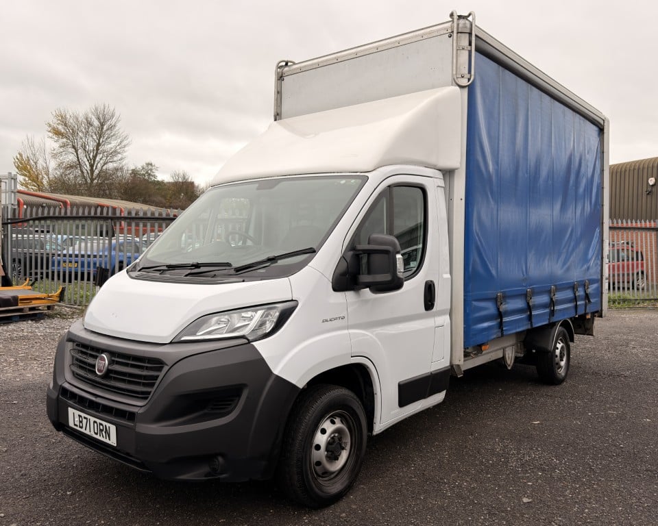 2021 (71) FIAT Ducato 2.3 MultijetII 35 Highroof Curtainside (11ft) Van (140ps), 2.3 litre diesel engine with 6-speed manual gearbox, JC Payne curtainside body with full closure tail lift platform and hinged top panel with gas struts, Column tail lift with 500kg capacity, 3- seats with a cloth interior, Bluetooth connectivity with handsfree calling and steering wheel controls, Electric side mirrors and windows, AM/FM Radio, Driver arm rest, Trip computer.