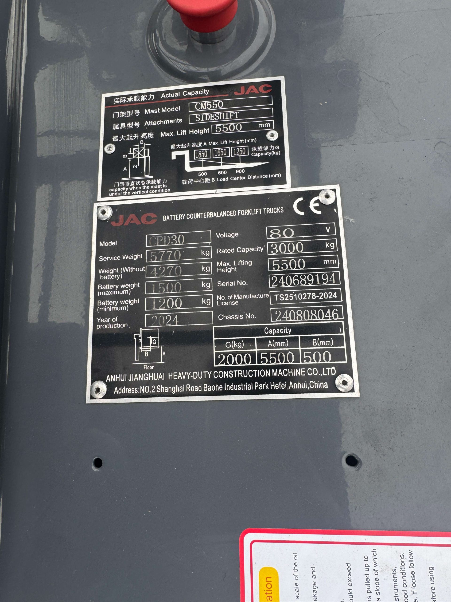 • Built for Customization: The inclusion of the 4th valve & Pipes ensures the JAC CPD30S is ready for specialized hydraulic attachments, from clamps to rotators, increasing the versatility of your 3 ton forklift.
