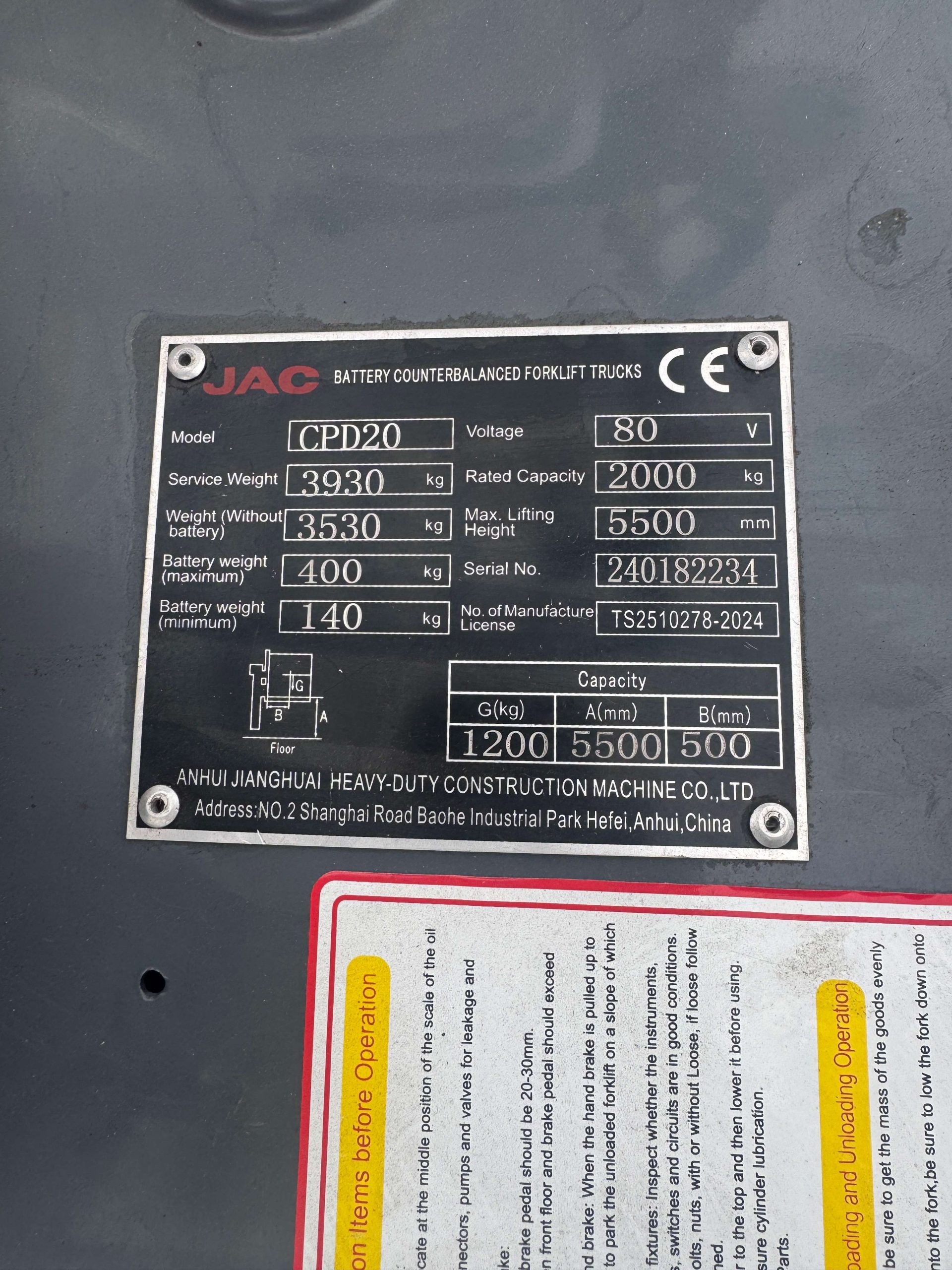 The JAC CPD20S-Li bridges the gap between the raw power of a traditional IC truck and the clean, quiet operation of an electric unit. Its 2 ton forklift rating combined with the 5.5m reach makes it one of the most versatile electric trucks on the market.