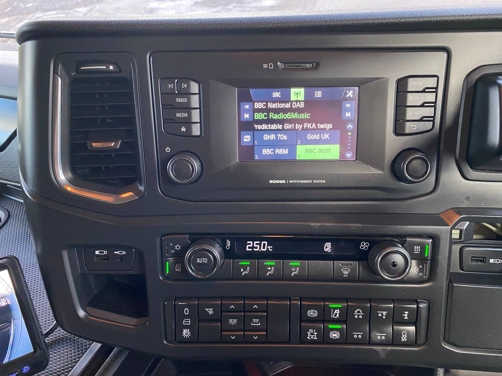 Specification : Climate control, Scania infotainment system, Fridge/Microwave, Leather trim, PTO prep (unused) Full Scania service history, Very clean and tidy, 12m driveline warranty.