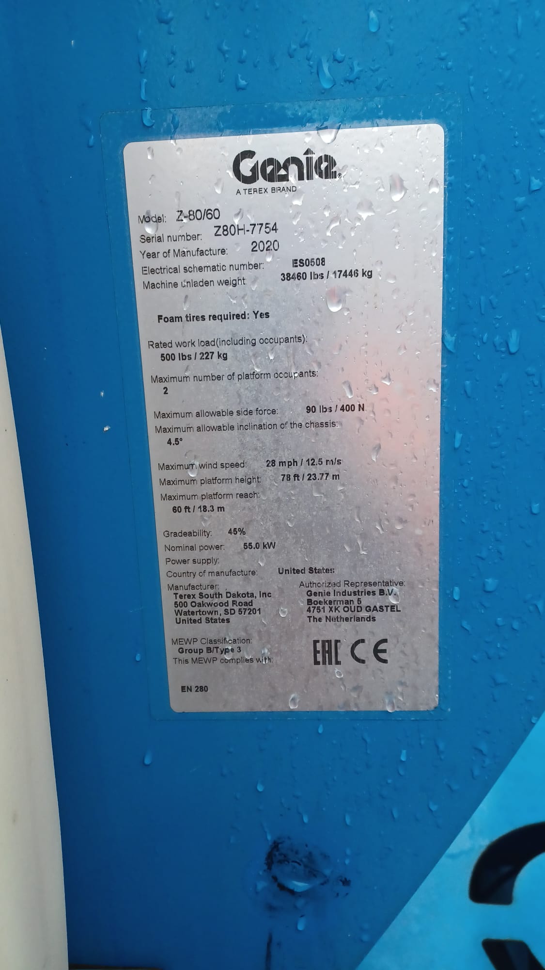 GENIE Z62/40 - 20M ARTICULATED BOOM