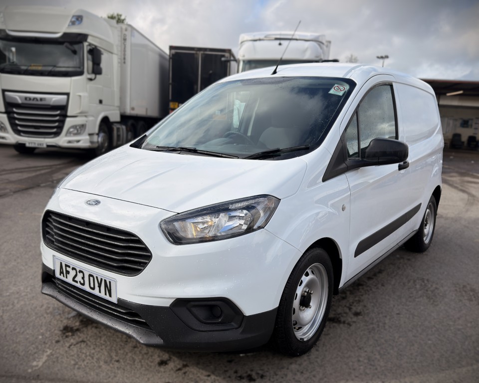 2023 (23) Ford Transit Courier 1.5 TDCi Leader L1 Panel Van (75ps), 1.5 litre diesel engine with a 6-speed manual gearbox, AM/FM radio, Bluetooth connectivity with handsfree calling, Remote central locking, Rear barn doors, Ply-lining, 2-seats with a Black cloth interior, Trip computer, VERY LOW MILES.